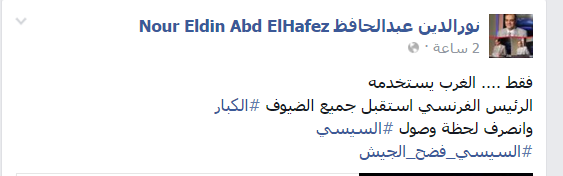 علق الإعلامي نور الدين عبدالحافظ: “فقط… الغرب يستخدمه… الرئيس الفرنسي استقبل جميع الضيوف الكبار وانصرف لحظة وصول السيسي”، وأضاف “السيسي فضح الجيش”.