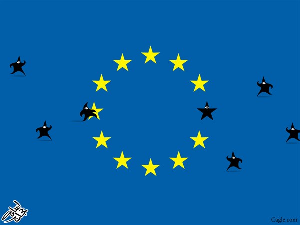 وقام الموقع ذاته بنشر هذا الرسم المعبر عن محاولات تنظيم “الدولة” للسيطرة والعبث بالاتحاد الأوروبي: