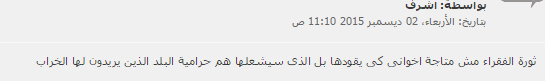 ويقول أشرف: أن “ثورة الفقراء مش محتاجة إخواني كي يقودها بل الذي سيشعلها هم حرامية البلد الذين يريدون لها الخراب”.