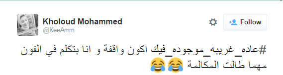 وقالت Kholoud Mohammed إن العادة الغريبة لديها أنها تظل واقفة أثناء حديثها في الهاتف مهما طالت المكالمة”.