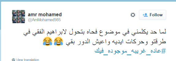 فيما كانت عادة amr Mohamed “لما حد يكلمني في موضوع فجأة بتحول لإبراهيم الفقي في طريقته وحركات إيديه واعيش الدور بقى”.