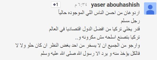 وأوضح “ياسر أبوحشيش”: “أردوغان من أحسن الناس اللي موجودة حاليا، رجل مسلم، قدر يخلي تركيا من أفضل الدول اقتصاديا في العالم، تركيا بتصنع أسلحة مش مكرونة، وأرجو من الجميع أن لا يسخر من أحد بغض النظر إن كان حلو ولا لا، فالكل يؤخذ منه ويرد إلا رسول الله صلى الله عليه وسلم”.