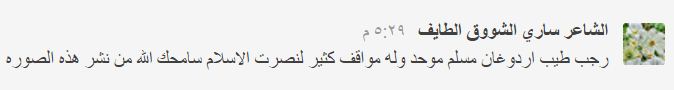 وقال “الشاعر ساري الشوق”: “رجب طيب أردوغان مسلم موحد وله مواقف كثير لنصرة الإسلام سامحك الله من نشر هذه الصورة”.