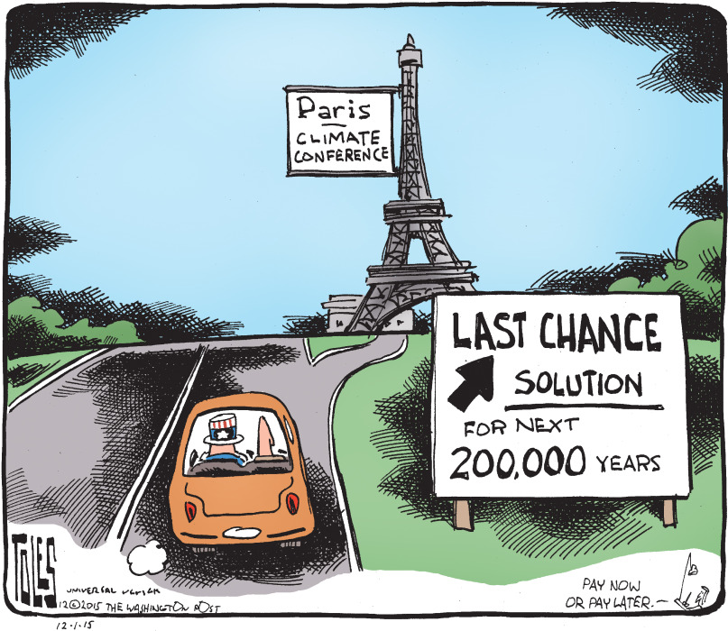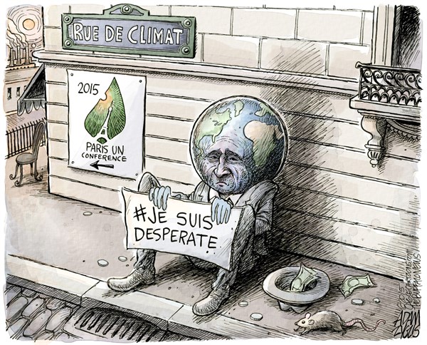 وتابع موقع “بولتيكال كارتونز” رسوماته عن مؤتمر المناخ العالمي وما سيقدمه للعالم بهذا الرسم: