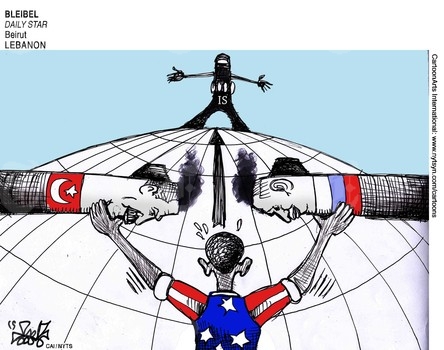 وعن الصراع الدائر بين تركيا وروسيا بعيدا عن تنظيم الدولة نشرت جريدة “نيويورك تايمز” هذا الرسم: