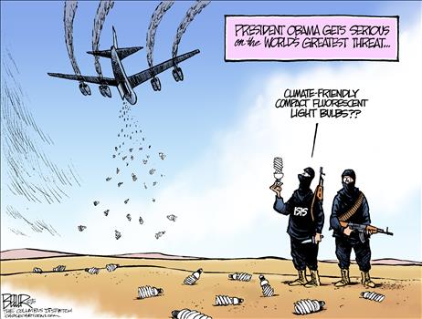سخر موقع تاون هال من تعامل الرئيس الأميركي باراك أوباما مع تنظيم الدولة فكان له هذا الرسم: