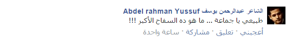 وبسخرية، علق الكاتب عبدالرحمن يوسف، قائلًا: “طبيعي يا جماعة.. ماهو ده السفاح الأكبر!!!”.