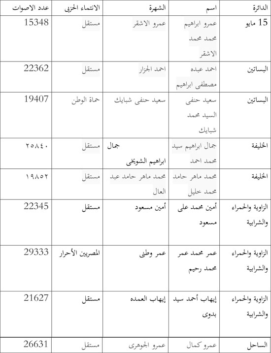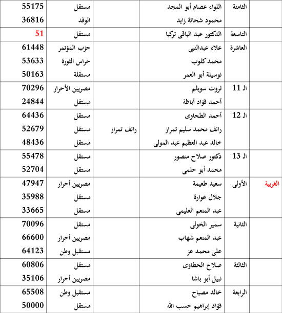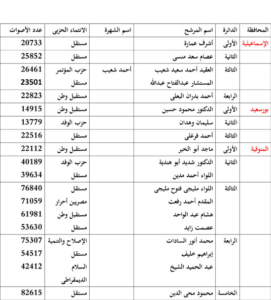 بالأسماء والأرقام.. ننشر النتيجة النهائية لانتخابات الإعادة