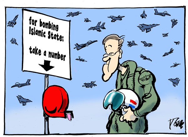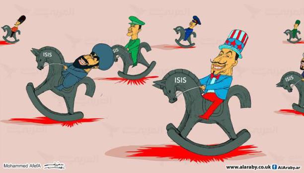 وجاء هذا الرسم في موقع “بولتيكال كارتونز” ليعبر عن محاربة العالم كله لتنظيم “الدولة”:
