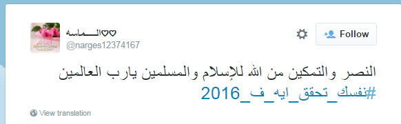 – الماسة: “النصر والتمكين من الله للإسلام والمسلمين يا رب العالمين”.