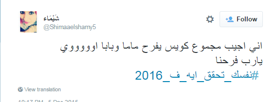 – شَيْمَاء: “أجيب مجموع كويس يفرح ماما وبابا اوووووي،، يا رب فرحنا”.
