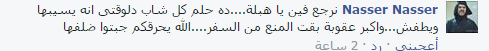 – Nasser Nasser: “نرجع فين يا…… ده حلم كل شاب دلوقتي إنه يسيبها ويطفش… وأكبر عقوبة بقت المنع من السفر… الله يحرقكم جبتوا ضلفها”.