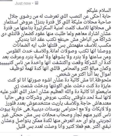 سادت حالة من الجدل الشديد، عبر مواقع التواصل الاجتماعي؛ بعد تداول أخبار ومنشورات تتهم “رضوى جلال”، صاحبة شركة مليكة لأزياء المحجبات، وزوجة المرحوم أحمد جبلي، بالنصب وإصدار شيكات دون رصيد والاستيلاء على ما يقرب من 15 مليون جنيه، والسفر إلى الخارج، مرفق مع هذه المنشورات صورة من الشيكات.