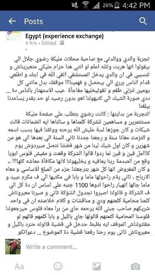 وتداول رواد مواقع التواصل، منشورًا لشاب يدعى “نادر بكر” اتهم خلاله رضوى جلال، بالاستيلاء على أكثر من 15 مليون جنيه مصري من شركات، وسافرت بعدها خارج مصر.