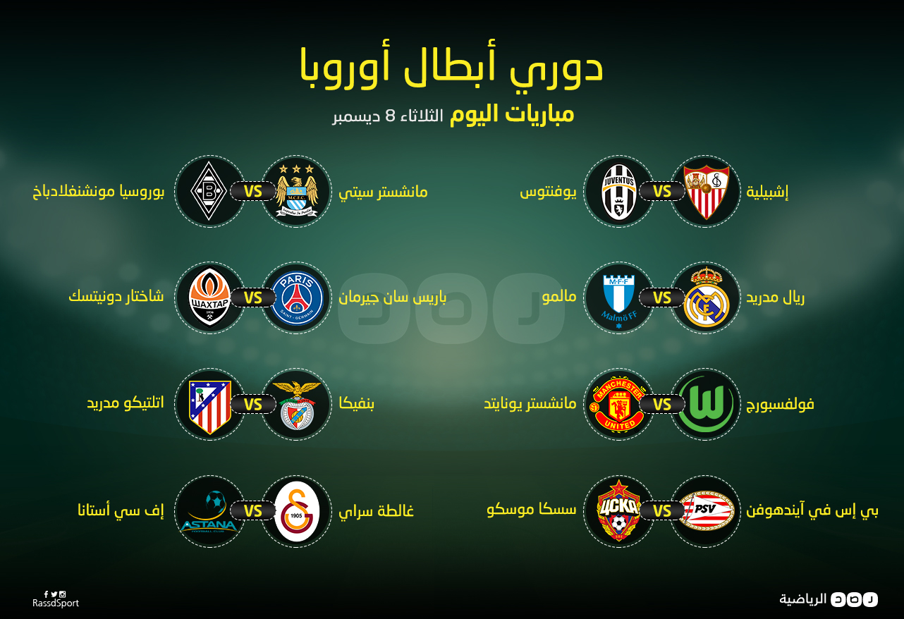 تتجه أنظار عشاق الساحرة المستديرة الليلة، إلى مباريات دوري أبطال أوروبا التي تشهد مواجهات لفرق كبيرة في مباريات كثيرة، نستعرضها في الجدول التالي: