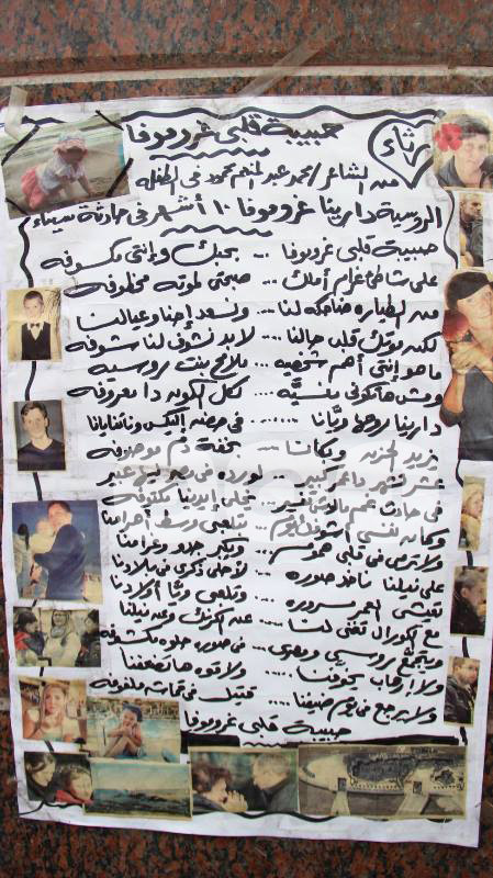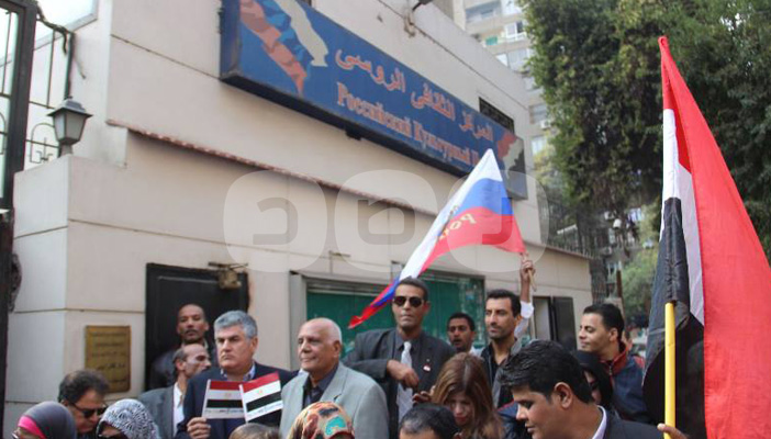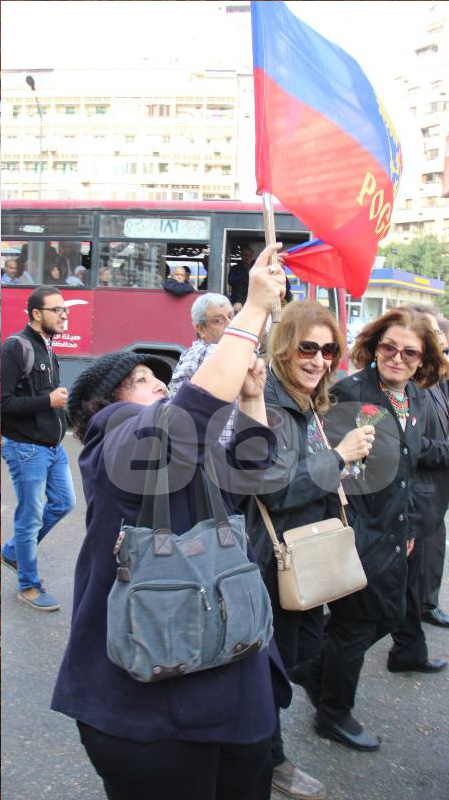 نظم عدد من خريجي الجامعات الروسية والسوفييتة والناشطين السياسيين مسيرة من المركز الثقافي الروسي حتى السفارة الروسية بالدقي صباح اليوم للمشاركة في ذكرى “الأربعين” للطائرة الروسية المنكوبة.