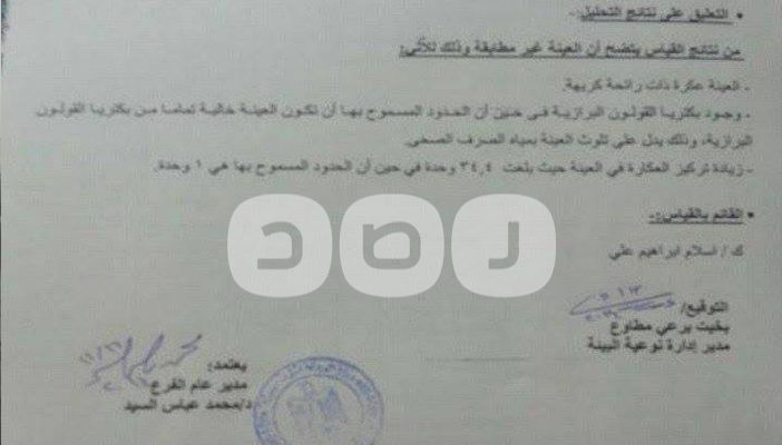 كشفت تقارير مديرية الصحة بالغربية، عن تلوث مياه الشرب بالمحافظة، وأنها غير مطابقة للمواصفات، لتنفي ما صرح به مسؤولون من أن المياه سليمة ونظيفة.