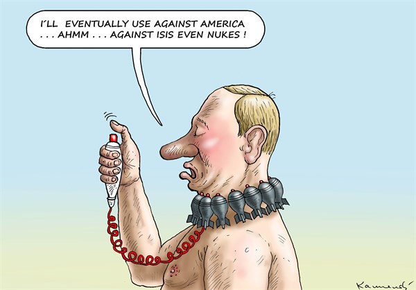كاريكاتير.. بوتين يدمر روسيا في سبيل تدمير أميركا وتنظيم الدولة