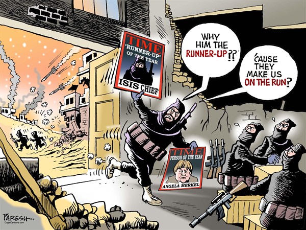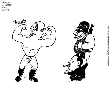أما عن محاربة بوتين لتنظيم الدولة فسخر موقع “بولتيكال كارتونز” بهذا الرسم: