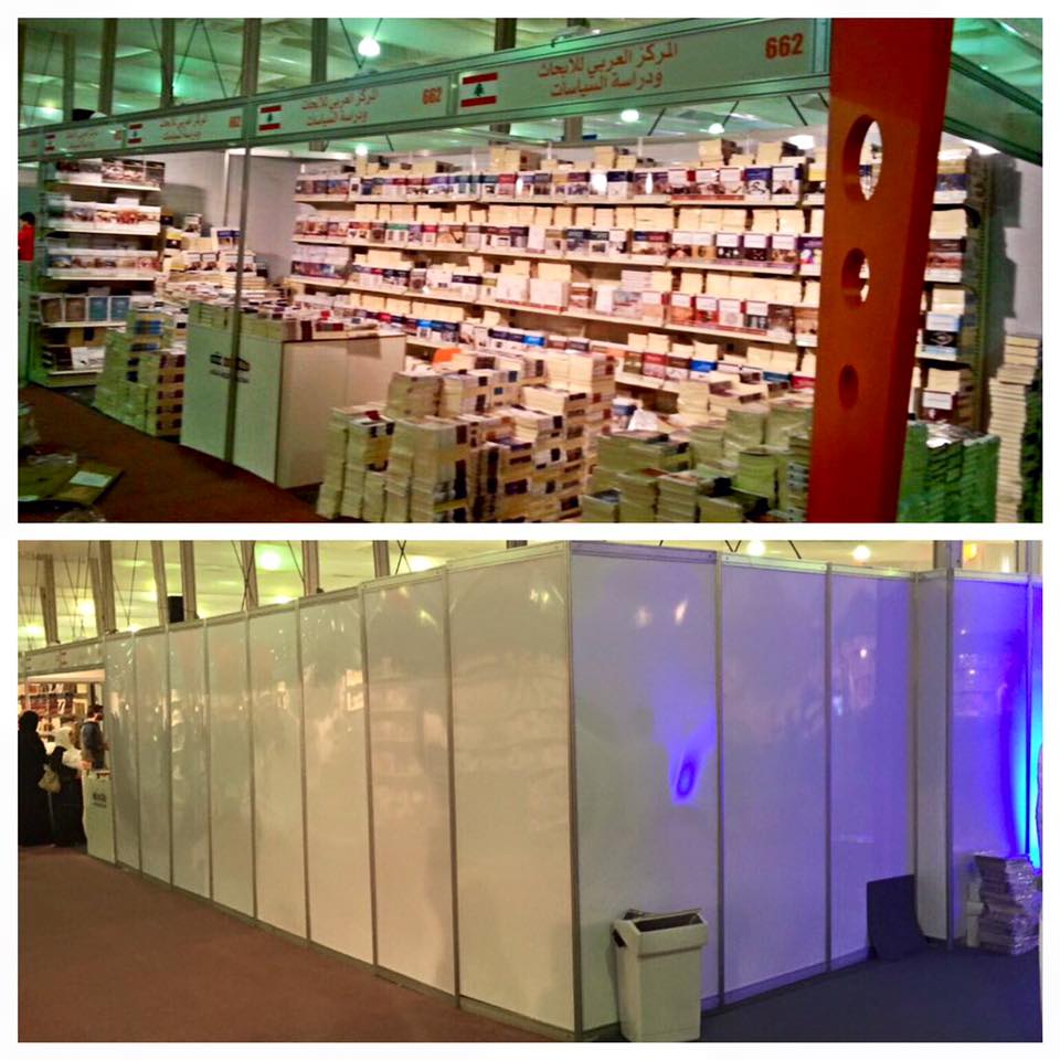 ونشر القديمي صورتين لجناح “المركز العربي للأبحاث” داخل معرض جدة: الأولى قبل إغلاق “المركز” والثانية بعد “إغلاقه”.