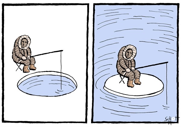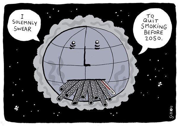 فنشر موقع “بولتيكال كارتونز” هذا الرسم ساخرا من أزمة المناخ: