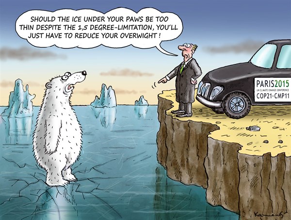 أما جريدة “الجارديان” فنشرت هذا الرسم عن مؤتمر المناخ العالمي بباريس: