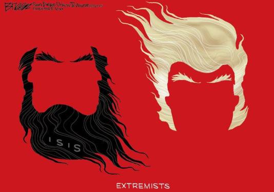 وعن تشابه إرهاب المرشح الرئاسي الأميركي دونالد ترامب مع إرهاب تنظيم الدولة نشر موقع “يو إس نيوز” الأميركي هذا الرسم: