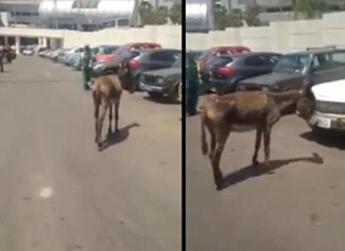 تداول ناشطون على مواقع التواصل الاجتماعي مقطع فيديو يُظهر حماراً تائهاً تمكن من الدخول إلى صالة الوصول رقم 3 في مطار القاهرة الدولي، واعتبروا هذه الحادثة دليلاً على الإهمال.