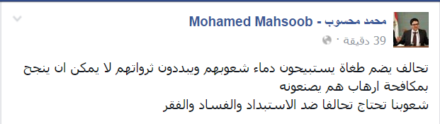 انتقد الدكتور محمد محسوب، وزير الدولة للشؤون القانونية والبرلمانية الأسبق، الإعلان عن تأسيس تحالف عسكري إسلامي لمكافحة الإرهاب.