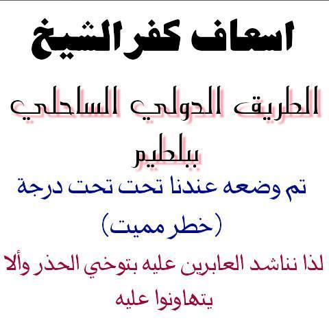 رفع مرفق إسعاف كفر الشيخ تصنيف الطريق الدولي الساحلي المار بمحافظة كفرالشيخ إلى تصنيف “خطر مميت” بعد تزايد نسبة الحوادث على الطريق بشكل غير مسبوق.