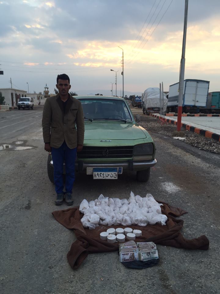 وتم ضبط السيارة وبتفتيشها عثر على 40 كيسا من المواد المتفجرة و8 عبوات أسطوانية الشكل تحتوي على نفس المادة المتفجرة، بالإضافة إلى مبالغ مالية كبيرة تجاوزت الأربعين ألف جنيه مصري بحيازة السائق.