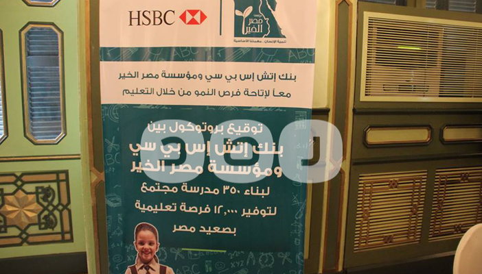 وقعت مؤسسة مصر الخير بروتوكول تعاون مع بنك HSBC لبناء 350 مدرسة تعليم مجتمعي لبنائها في المناطق النائية والأماكن التي لا توجد بها مدارس حكومية، وذلك ظهر اليوم بفندق الماريوت.