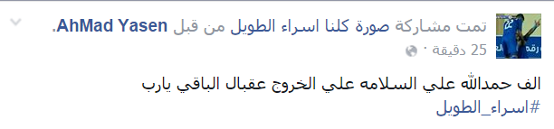 AhMad Yasen-:” ألف حمد لله على السلامة على الخروج عقبال الباقي يارب”