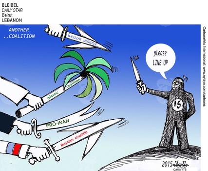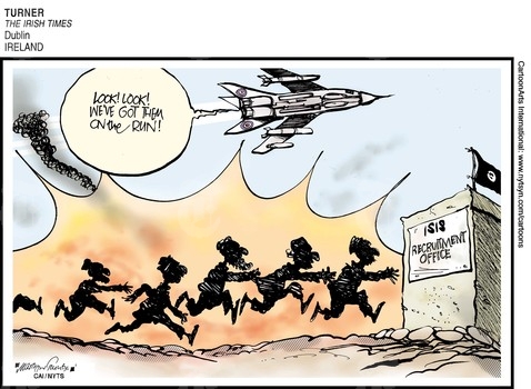 أما عن مخططات استهداف تنظيم الدولة فنشر موقع “بولتيكال كارتونز” هذا الرسم: