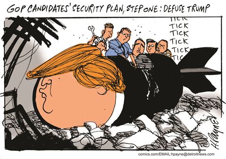 جاءت رسومات الكاريكاتير التي نشرتها صحف ومواقع العالم لتعبر عن عدد من الموضوعات المهمة في عدة مناطق في العالم، ونقل موقع “تاون هال” رسما يسخر من المرشح الأميركي دونالد ترامب عن طريق محاولة إبطال مفعول قنبلة قبل الانفجار.