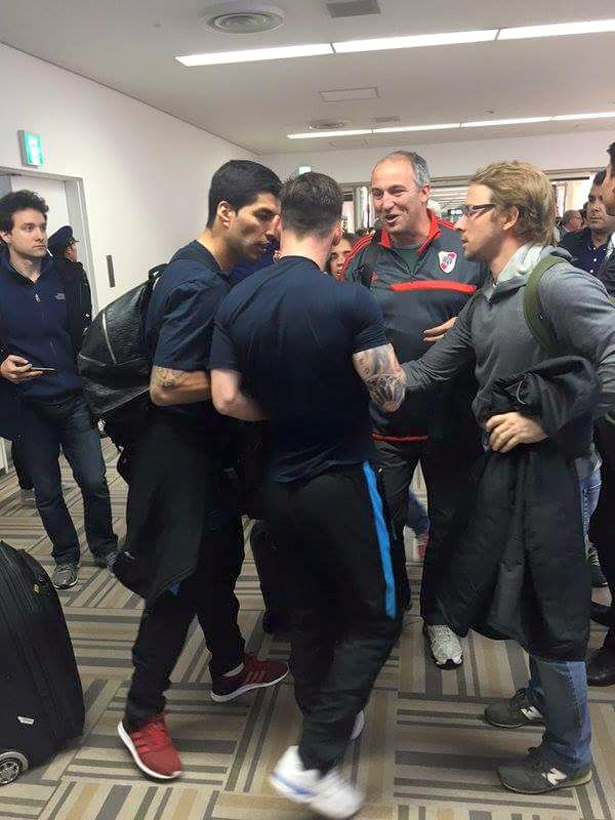 نقلت صحيفة “آس” الإسبانية، الإثنين، حادثة وقعت من جماهير ريفر بليت بعدما وجهوا إهانات لفظية إلى الدولي الأرجنتيني ليونيل ميسي نجم برشلونة الإسباني في مطار “ناريتا” الدولي بطوكيو، مشيرة إلى أن أحد المشجعين الغاضبين قام بالبصق على وجه ميسي، الذي رد عليه بلكمة استدعت تدخل المدرب لويس إنريكي ولويس سواريز وخافيير ماسكيرانو وبعض الحاضرين في المكان من أجل تطويق الشجار.