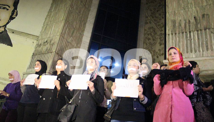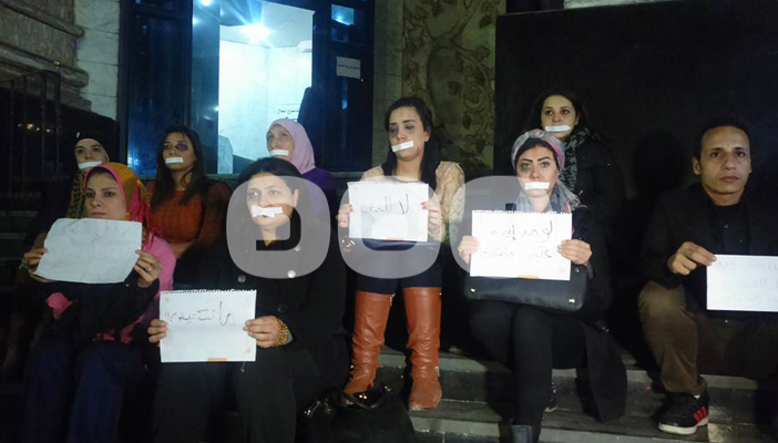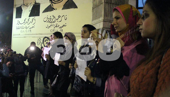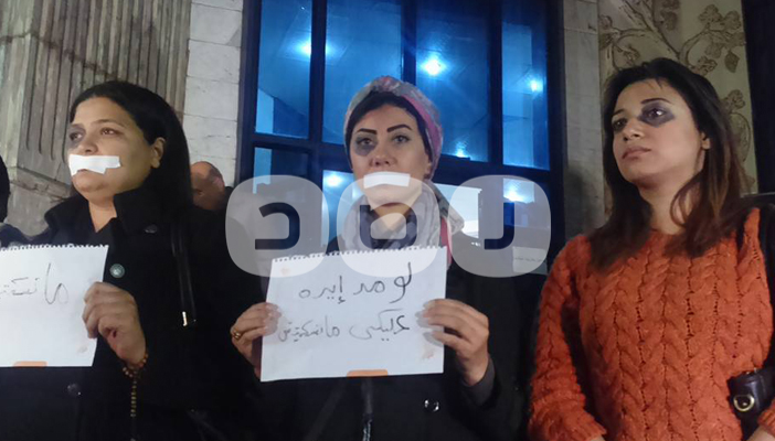 نظم عدد من النشطاء وقفة اليوم الثلاثاء أمام مقر نقابة الصحفيين، للتضامن مع أهداف الأمم المتحدة لمناهضة أشكال العنف ضد المرأة، تحت شعار “ماتسكتيش”.
