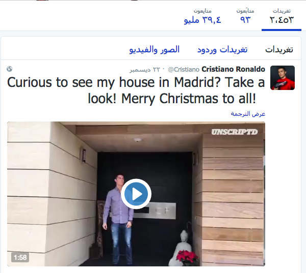 وبلغت عدد تغريدات النجم البرتغال “2453” تغريدة منذ دخوله موقع تويتر عام 2010.
