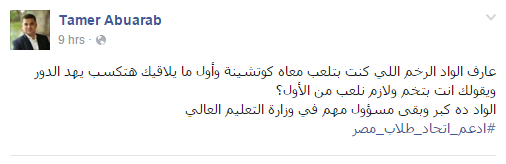 ودعا الكاتب الصحفي تامر أبو عرب إلى ضرورة دعم اتحادات الطلاب في مصر بعد قرار إلغاء نتائج انتخاباتهم.