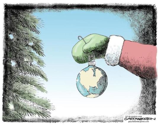 تداولت صحف ومواقع العالم اليوم العديد من الرسوم الساخرة من العالم مع اقتراب العام الجديد، ونشرت رسومًا ساخرة عن الانتخابات الأميركية المرتقبة وعن أزمة المناخ العالمي وأيضًا عن الأوضاع السورية بين بوتين وبشار وكذلك إسرائيل.