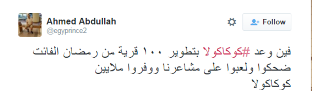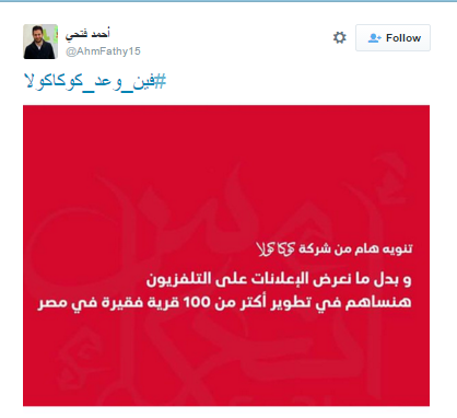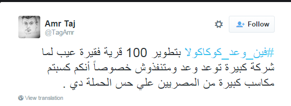 Amr Taj: #فين_وعد_كوكاكولا بتطوير 100 قرية فقيرة عيب لما شركة كبيرة توعد وعد ومتنفذوش خصوصا أنكم كسبتم مكاسب كبيرة من المصريين على حس الحملة دي