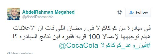AbdelRahman Megahed: في مبادرة من كوكاكولا في رمضان اللي فات أن الإعلانات هيتم توجيهها لـ100 قرية فقيرة فين نتائج المبادرة؟!