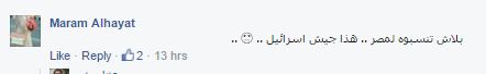 وعلق رواد موقع التواصل الاجتماعي “فيس بوك”، فقالت مرام: “بلاش تنسبوه لمصر..هذا جيش إسرائيل”.