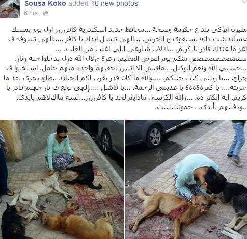 تداول عدد من رواد مواقع التواصل الاجتماعي صورا لبعض الكلاب الضالة مقتولة بطريقة وحشية في منطقة الأزاريطة بمحافظة الإسكندرية.