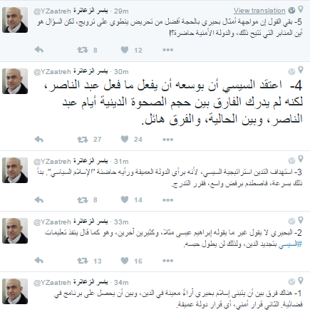 ولفت “الزعاترة” إلى أن “السيسي اعتقد أن بوسعه أن يفعل ما فعل عبدالناصر، لكنه لم يدرك الفارق بين حجم الصحوة الدينية أيام عبدالناصر، وبين الحالية، والفرق هائل”.