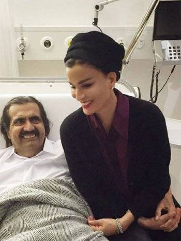 نشرت “الشيخة موزة بنت ناصر” زوجة أمير دولة قطر السابق الشيخ حمد بن خليفة آل ثان، صورًا لها عبر موقع “انستجرام” برفقة زوجها عقب إجرائه عملية جراحية ناجحة في مدينة زيورخ السويسرية.