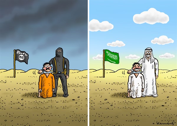 أما موقع “بولتيكال كارتونز” فأوضح أحكام الإعدام التي نفذتها السعودية اليوم بهذا الرسم: