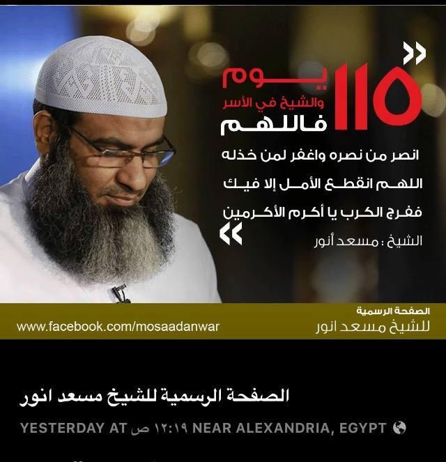في 14 سبتمبر 2015، اعتقلت عناصر من الداخلية المصرية الداعية الإسلامي السلفي الشيخ مسعد أنور، وتم اقتياده إلى جهة غير معلومة.