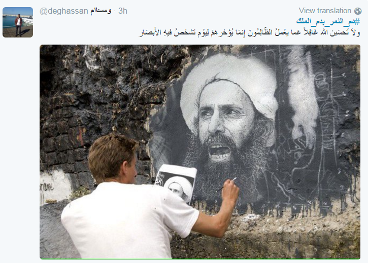 فيما دشن بعض مغردي موقع التدوينات القصيرة “تويتر” هاشتاج “دم الملك بدم النمر” احتجاجا على إعدام النمر