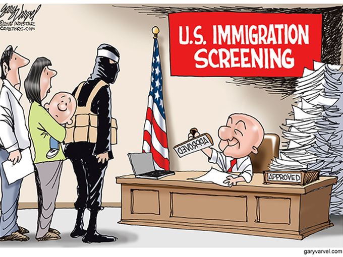 ونشر موقع “يو إس إيه توداي” الأميركي هذا الرسم ساخرا من استقبال اللاجئين في أميركا: